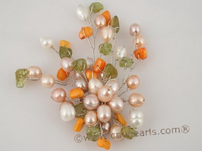 brooch032 online wholesale pearl& orange coral 18KGP chandelier brooch [brooch]  US$8.70