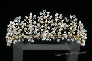 This Amazing wedding tiara’s is a stunning gold tone floral vine pattern made entirely of sparkingi rhinestones and faceted crystal;The design measures 15 inches on a gold-toned band and is 1.5inches tall in the center. This tiara is coordinates with most bridal dress, especially white and off-white. Shopping other style bridal jewelry: bridal jewelry set or bridal comb jewelry or bridal pearl tiara