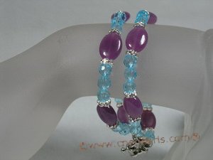 Double strands beach bracelet made of oval purple gemstone alternated with blue faceted crystal beads, Strung on sturdy nylon filament thread, this 7.5-inch beach bracelet is finished with an oversize silver or sterling spring ring clasp;
