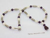 pn788 Freshwater Potato Pearl  Necklace With Amethyst Gemstone