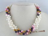 tpn013 three twisted strands 6-7mm white mixing multi-color side-drilled pearls necklace