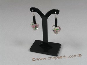 Fashion lampwork jewelry set conist of a 16inch necklace and a pai of sterling dangle earrings, metal lines thread with black wool pipe and 15mm white heart-shape lampwork beads, the necklace end with silver lobster clasp;