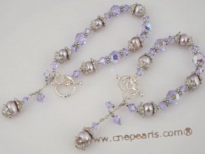 Materials: Gorgeous, glowing(5mm to 8mm) purple faceted Austria Swarovski Crystal, 7-8mm freshwater potato pearl,silver plated rounds and bicones spacers are perfect for wrists, end with Sterling Silver Heart toggle clasps, Please selection the length for each when ordering.