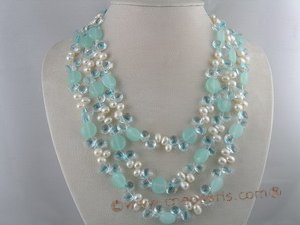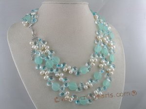 mpn041 Triple-strands coin shape crystal and pearl necklace jewelry [multi strands neckalce]  US$19.70