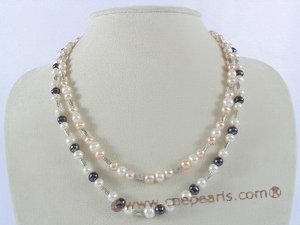 specially designed antique necklace is link with silk line into double rows, made of 6-7mm white &pink alternated with black potato freshwater pearl, combine with antique alloy fittings as spacer! ended with 925 silver antique round clasp; The wearing length is 17" -19".