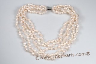 Hand Knotted Pearl Layer Necklace is strung by white thread, consist of six layer rows 6-7mm white
