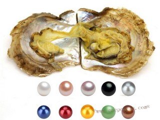 We packed single bulk akoya oysters by vacuum-packed without liquid in one carton, it can save much shipping cost from the new packing, A real pearl are planted in every oysters, pearl is about 6-7mm, AA quality - Round Shape, Good luster,and there are white, pink, purple,grey ,black, blue,red,gold,green and coffee colors mixed in every bag; Pearl colors cannot be variable; pearls are randomly selected and sent.the freshwater pearls color is revealed - white, pink, purple and black,blue,red,gold,green,coffee - each color with a different meaning of what it will bring to you - health, success, wealth, or love. The packing can be flexible, Now, we packaged one oyster in each vacuum bag;One sample carton includes 100pcs outside package. The gross weigth is 3KG ! We make a comparision chart as following: | Comparision between Wish Pearl in bucket and in vacuum packed (100pcs/carton) | | | canned-packed(apg001) | vacuum-packed(oyster01) | | Unit price | USD$1.85 | USD$1.50 | | Package | 100pcs/carton
