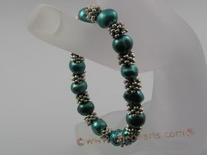 This is an extraordinary stretchy bracelets made of lustrous 8 -9mm dark blue cultured potato freshwater pearls, alternate with silver plated spacer fitting between each pearl.7.5" in length;