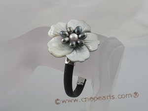 pbr044 Carve flower design Shell with cultured pearl center bangle bracelet [pearl bracelets]  US$13.43
