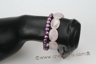 pbr365 6-7mm nugget shape purple pearls and rose quartz beads bracelets [stretchy bracelets]  US$12.35