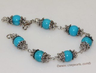 pbr529 Fashion Blue Turquoise Bracelet With Silver Tone Fitting [gemstone bracelet]  US$3.20