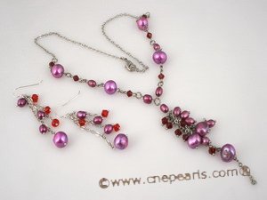 A fashionable necklace consist of 8-9mm purple potato shape and 4-5mm rice shape freshwater pearls, matching with purple faceted crystal beads on white metal chain. The wearing length is 16",ending with silver lobster clasp. Our matching a pair of 1.5inch cultured pearl dangle earrings with sterling silver hook per your need! This list price is only for one piece 16inch necklace! Minimum quantity: 5 pieces