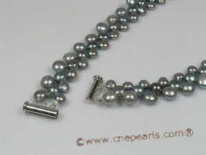 This is an elegant bread pearl necklace made of  three rows 6-8mm gradual change black bread pearls;end with silver or 925silver clasp; 16 inch in length;