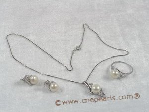 925silver& cultured pearl jewelry set featured 7.5-8mm white bread pearl combine with sterling silver mountting with zircon beads;Different color for you choice: white, pink, purple or blacK; This set match with a pairs of sterling stud earrings and a 925silver rings(us size 7 ); the pendant include a 16inch sterling box chain;