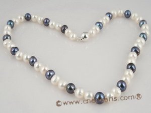 This classic black and white pearl jewlry set suite gets even more luxurious! Our beautiful set comes with a hand-knotted 16-inch pearl necklace, matching a 7.5inch pearl bracelet;This set hand specially designed with two pieces good quality 7-8mm white potato freshwater pearl& one black pearl at intervals, Secured with steling silver 8mm ball clasp!