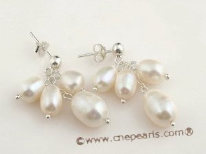 Elegance nature white grape design pendant necklace and matching 925silver dangle stud earrings, design with Three gorgeously 6-7mm freshwater rice pearl swing from .925 sterling silver chains combine with one piece 8-9mm rice pearl at the end; All the metal are sterling silver! An unforgettable gift for you lover!