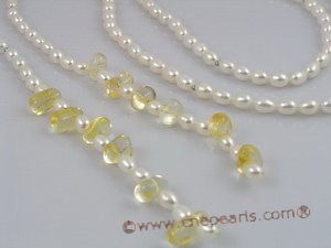 RPN001 48" 6-7mm white rice pearls decorated with citrines [RPN001]  US$32.94