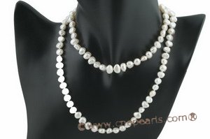 A beautiful pearl Matinee Necklace consisting of 7-8mm nature white freshwater nugget pearls. have beautiful luster and smooth. Each pearl is double knotted with durable silk thread for beauty and security,This necklace is 28 inches long without any clasp. Different color for you choose: white or pink