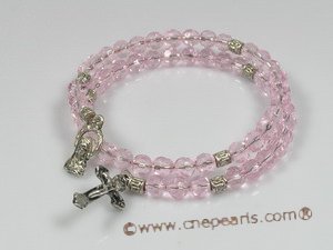 rybr014 Hand-wrapped pink faceted crystal rosary bracelet with silver spacer [rosary bracelet]  US$3.20