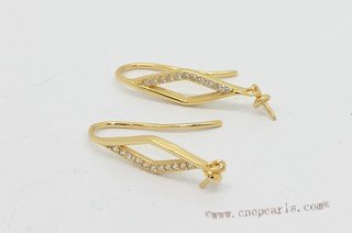 Wholesale sterling silver earring hook setting in gold color, about 6*26mm; with Zircon beads;can fit 7-10mm rice pearl or round pearl, idea for making pierce earrings. This list price is for one pairs earring hook! | Sterling Silver Earrring Hook Mouning with Zircon Beads | | Item No.: | sem219 | Size: | 6*26mm | | Jewelry Type: | Earring Hook | Metal: | Sterling silver | | MOQ: | 10 Pairs