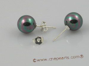 shpe005 10mm black round shell pearl sterling earrings in wholesale [shell pearl earrings]  US$2.60