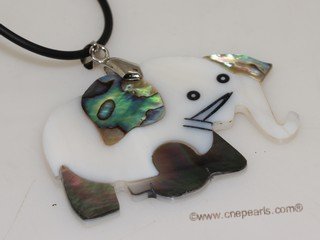 Designer mother of pearl pendant in elephant shape , the pendant is messrued about 37*55mm in size, end with a large silver plated bails! This list price is for one piece shell pendant include a 16inch leather chain with silver tone clasp; Minimum quantity: 5 pieces