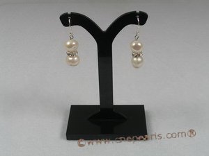 Gorgeous sterling earrings are made of two pieces 8-9mm white potato shape pearl. with crystal fittings as spacer; Ends with two Sterling Silver Ear Hooks,for pierced ears. Makes a perfect gift! this pair of earrings measure 2 inch in the length; The matching necklace, number (pnset004) is also available.