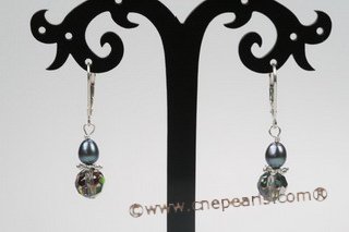 Hand wrapped sterling silver rice pearl earring design with 6-7mm black freshwater rice pearl , 8mm black Austria crystal beads,combine with 925 silver lever back ear hook, For pierced ears. simple but charming. The quoted price is for one pair black pearl earrings! other style earring:clip earrings or hoop earrings or dangle earrings;