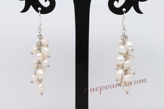 Cultured seed pearl dangle earrings is made of white 4-5mm white freshwater potato pearl and rice shape pearl drop from silver toned chian, combine with sterling silver ear hook! A perfect valentine's day or bridal jewelry gift for her! 4-5mm Cultured Seed Pearl Grape Shape Dangle Earrings
