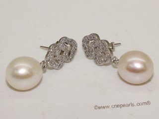 The quoted price is for one pair sterling silver earrings; Large Freshwater Pearl Sterling Silver Earring with Sparkling Zircon Beads