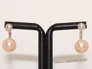 This special two pearl earrings is handcrafted from sterling silver. it featured a larger pink 10-10.5mm bread pearl and a pink 5-5.5mm smaller bread pearl . the freshwater pearls are in stunning iridescence . it is special addition to any jewelry collection. The quoted price is for one pair sterling silver earrings; Pink&Purple Color Freshwater Pearl Two Pearls Stud Sterling Silver Earring