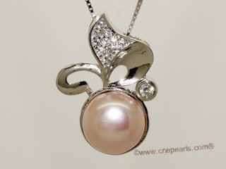 Freshwater pearls sterling Silver pendant, inlay a 10.5-11mm purple freshwater bread pearl, encrusted with sparkling Zircon beads pave ; you can choose different pearl colors: white, pink or purple;
