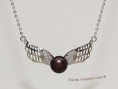 04.spp022 sterling 7-8mm AAA round pearl Heart with CZ pendant