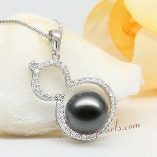 This 9-10mm Tahitian pearl pendant is crafted in 925 sterling silver and inlaid with 44 Swarovski CZ. the calabash pendant with best wishes of long life and wealth, will bring good luck to you when wear it.