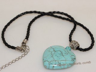 tpd006 Wholesale heart-shape blue turquoise pendant necklace with black cord [turquoise necklace]  US$2.40