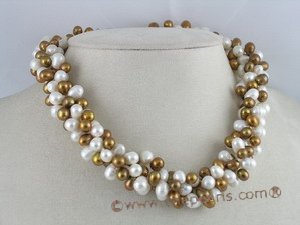 tpn019 three twisted strands 6-7mm white mixing coffee top-drilled pearls necklace [twisted neckalce]  US$16.10